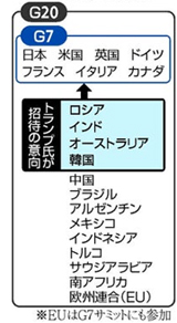 昨日の続き・・・トランプは「G7はとても時代遅れだ」として、ロシア+オーストラリア+インド+韓国を加えたG11にしたい考えを表明したが、G7各国がすんなり認めるとは思えない。「一国主義」を声高に進めるトランプにみな懐疑心を持っているしロシアの軍事的脅威に直接曝されている英仏独が「復帰」をすんなりと了承するとは思えない。また中国への依存を強める「二股外交」の韓国は対中政策の足並みを乱す恐れをはらむ。声の掛かった浅慮の文在寅はさっそく快諾した。天にも昇る気持ちだろう、が、トランプは米中いずれの陣営につくのか踏み絵を迫ったとも考えられる。