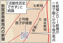 規制庁は敦賀原発2号機地下のD-1断層は「活動性を否定するには科学的根拠が足りず恣意的な感じがする」と厳く評価、今月末までに廃炉の決定になりそうだ。原発の「耐震設計審査指針」は安全上重要な施設を活断層の真上に設置することを認めていない。これまでも2号機の審査では原電が審査書類を無断で書き換えたり多数の誤記が見つかったりして審査はたびたび中断。規制委申請書の出し直しを求める行政指導をしていた。