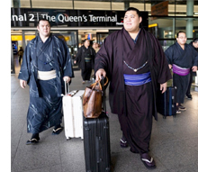 今日から始まる大相撲ロンドン公演、チケットは完売したそうな。総勢120名は2班に分かれてJAL機に搭乗。大関以上はファーストクラス、幕内以上はビジネス、以下は可哀想にエコノミーだと云う。体が大きくビジネスなどに座れない場合は3人がけのエコノミーに2人で座る。通常のベルトで固定できない場合は延長ベルトも用意されている。力士の体重から左右で機体のバランスが偏らないように振り分けるらしいが、それでも同乗する一般客はやっぱり心配だったろうな !?